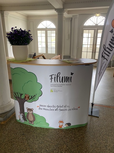 Filumi wird von der Bertold und Brigitte Hollering-Stiftung unterstützt. Frau Hollering war an unserem Wochenende sogar vor Ort. Eine sehr freundliche zurückhaltende Frau, der die eigene Freude über die strahlenden Kinderaugen deutlich anzusehen war. Gründer und Ideengeber des Zentrums sind die erfahrenen Osteopathen Georg Schöner und Norbert Neumann. Letzterer hat besonders viel Erfahrung mit Kindern mit Down Syndrom. Die Beiden waren an unserem Wochenende ebenfalls kurz vor Ort, blieben aber im Hintergrund. So wie ich es wahrgenommen habe, geht es bei Filumi um die Multiplikation von therapeutischem Wissen, somit ist das Team der Guru und behandelt die Kinder auf hohem Niveau. Gegenüber im Markgräflichen Schloss befindet sich die Freie Akademie für Osteopathie. Hier werden Osteopathen aus- und weitergebildet. Das Zentrum Filumi bietet Therapien für Kinder mit Krebserkrankung, Down Syndrom und neurologischen Erkrankungen an. Zu den angebotenen Therapieformen gehören: Ernährungs- und Phytotherapie, Diagnostik/ versch. Messungen, Bewegungstherapie, Osteopathie, neurologische Behandlungen, Atemtherapie, Entspannungstherapie, Physio- und Ergothrapie, Psychotherapie, Klang-/Musiktherapie, HRV-/EEG-Messungen und selbstverständlich Osteopathie.