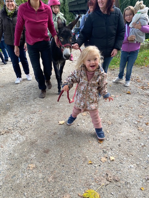 Schöne Erinnerungen an gemeinsame Erlebnisse, viele Impulse zu (für uns) neuen Therapieformen und zur Gestaltung des Alltags. Einfach mal mehr schöne Erlebnisse planen, viel in den Wald gehen, denn auch das ist Therapie. Sinneseindrücke fördern und Begegnungen mit Tieren ermöglichen. Zeit für mich nehmen, Osteopathie für alle. Klangschale besorgen und Stimmgabel bestellen. Schwimmen gehen und abwarten, wie die Osteopathie auf Lille wirkt. Am dritten Therapietag hat sich in ihr deutlich was verändert. Sie war unheimlich gut drauf, fröhlich und ohne Mittagsschlaf extrem gut drauf. Sie rannte im Restaurant abends von Tisch zu Tisch und begrüßte alle Gäste mit einem fröhlichen „Hai!!“ Am vierten Tag war sie plötzlich schlecht gelaunt, hatte weniger Geduld und brauchte ganz viel Mama und Papa. So kannten wir sie gar nicht. Ich würde sagen: In ihr ist etwas in Bewegung geraten, die Puzzleteilchen ordnen sich neu und das kann auch mal unangenehm sein. Am Ende der Intensivtherapie sind sicher alle ein wenig müde. Wir, vor allem auch Lillemors großer Bruder, behalten die Zeit bei Filumi in Bad Alexandersbad in sehr guter Erinnerung.