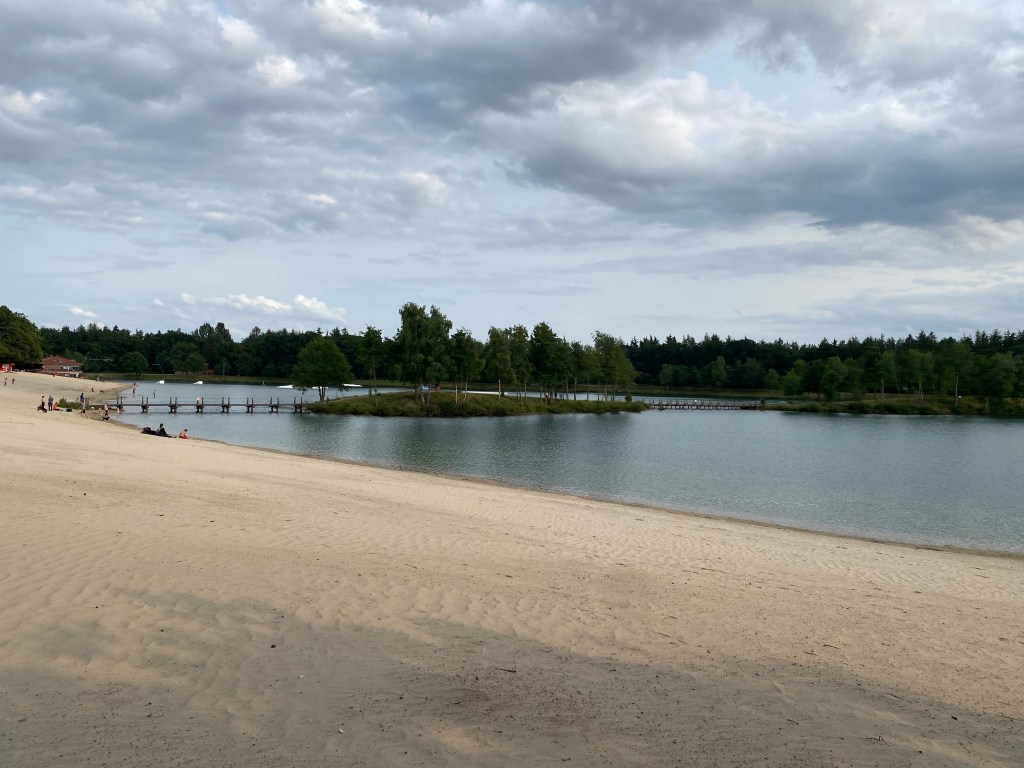 Den See haben wir wegen des kühlen und windigen Wetters weniger genutzt, aber wir sind dort sehr gerne spazieren gegangen. Der Sand hell und weiß, das Wasser in der Sonne türkisblau, war der See sehr hübsch anzusehen. Die Kinder haben die Wasserskifahrer bewundert, die dort über Hindernisse gesprungen sind. Es gibt viele Bereiche, die zum Baden geeignet sind. Der See liegt direkt neben dem Freizeitpark und auch in der Nähe der Ferienhäuser. Es gibt sogar einen Hundestrand. Ein Highlight war das Überqueren des Sees über die Stege, die eine kleine Insel in Ufernähe mit dem gegenüberliegenden Ufer verbinden. Das Strandbistro sah nett aus, wir haben es aber nicht besucht.